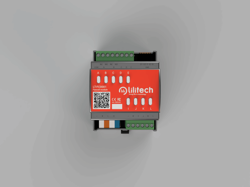 Il Fancoil Controller Lilitech è il modulo da barra DIN progettato per gestire in modo diretto e affidabile dispositivi fancoil, integrandosi completamente nell’ecosistema domotico Lilitech. Grazie a una dotazione hardware completa — 2 relè in scambio da 6A, 3 relè dedicati al ventilatore, 3 ingressi per sonde NTC, 2 uscite analogiche 0-10V e blocchi I/O digitali configurabili — offre un controllo preciso di riscaldamento, raffrescamento e ventilazione.