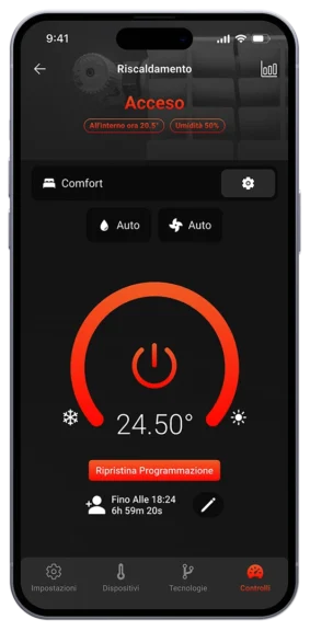 Controlla riscaldamento e climatizzazione. Imposta la temperatura ideale e risparmia energia grazie alla gestione intelligente.